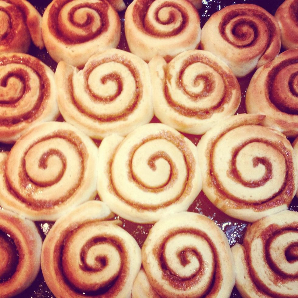 Now start cutting it. I was baking for my classmates and I have a lot so I sliced it thinner. Cutting it thicker would give you the usual cinnamon roll look.
