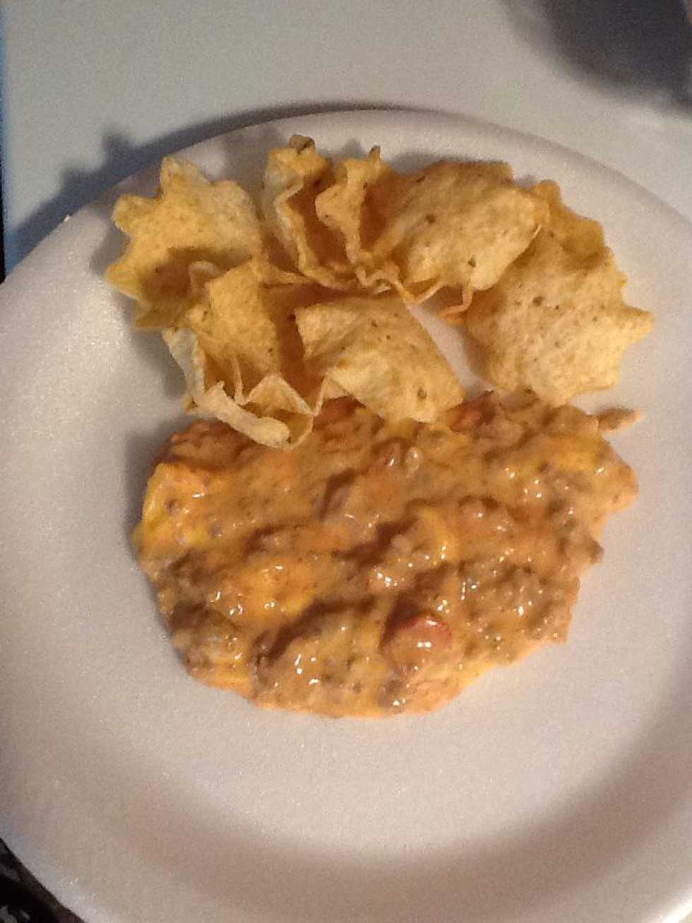 Just leave in crockpot til all cheese has melted. Stir every once in awhile so dip doesn't stick.