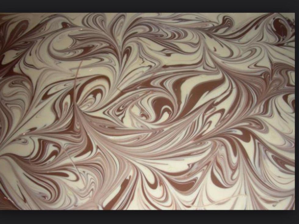 Make sure all the chocolate has been twirled properly and it should end up looking like the left side of this pan.