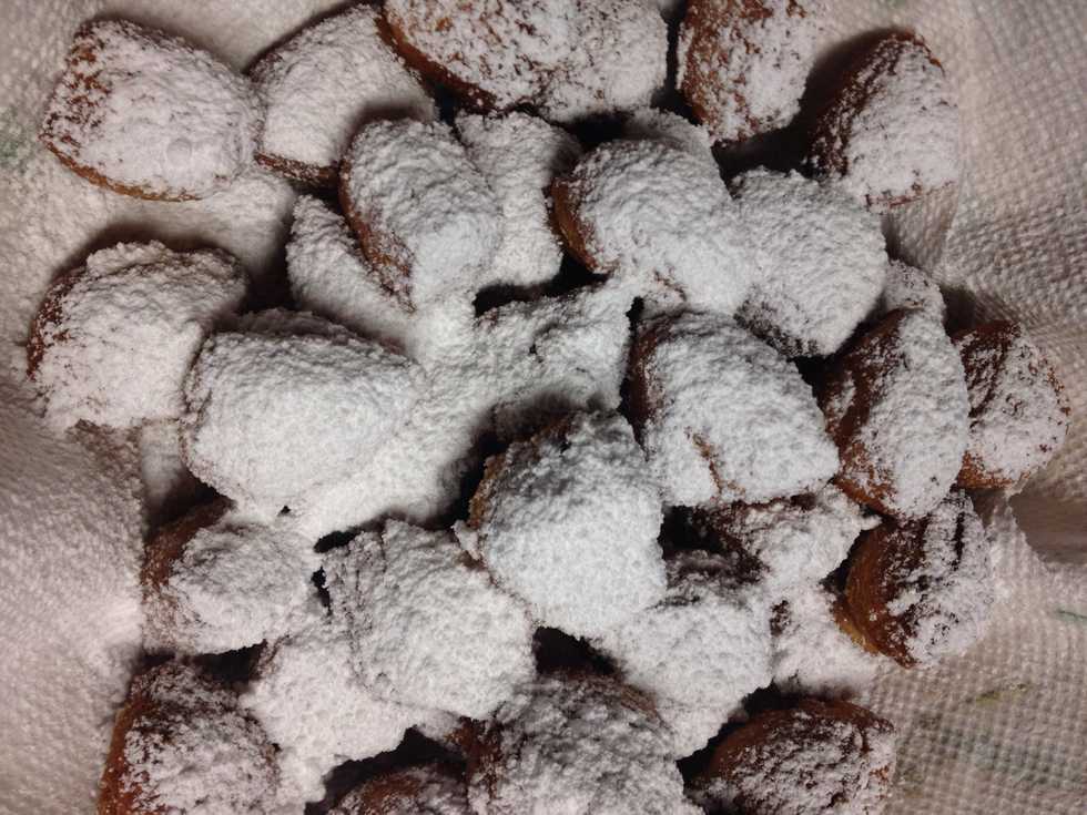 Buy biscuits from any grocery storeQuarter themDeep fry in vegetable oil on high heatRemove when they are brown.Place them on paper towel to soak all the oilSprinkle powered sugar on the donutsBe generous