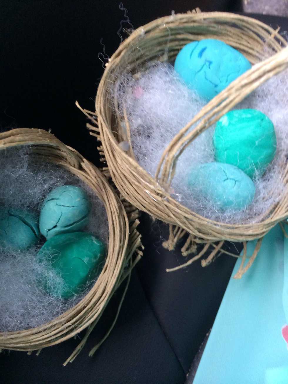 While that is drying, get your play dough. I'm going for a robins egg look, but you can do multiple colors for Easter.