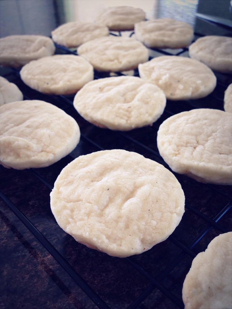 Unwrap dough and carefully cut each log into about 18 slices. Place dough circles 2 inches apart on baking sheet. Bake for 8-10 mins.