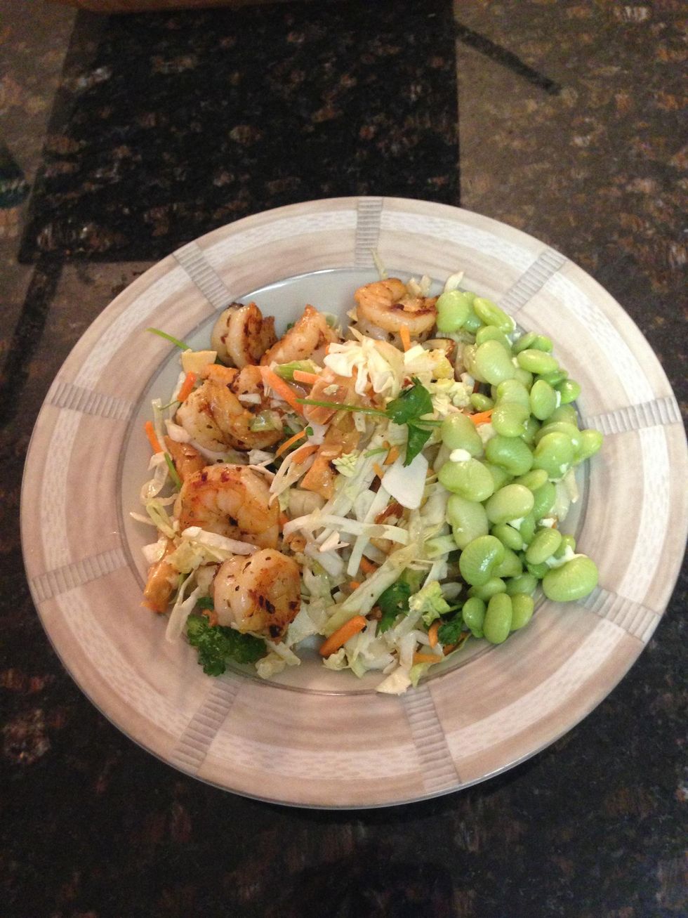 Beautiful Asian Chop Salad with Grilled Shrimp.