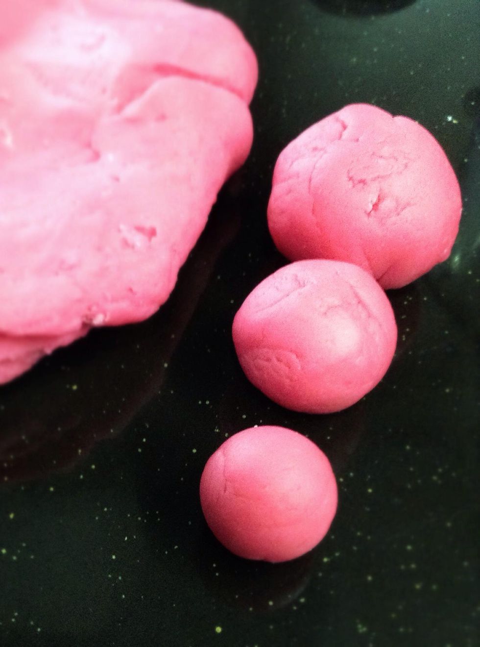 Pour 1 cup flour, 1/4 cup salt, and 1 cup water into a mixing bowl( yes I used pink salt)