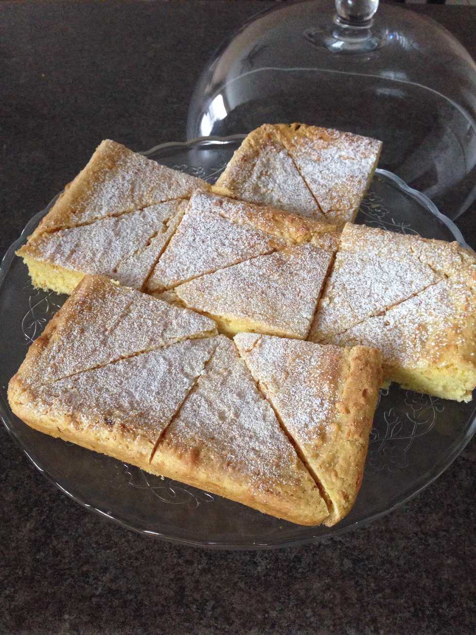 Yum! Allow to cool for a few minutes before turning it out. Then cool completely before cutting and dusting with sugar.