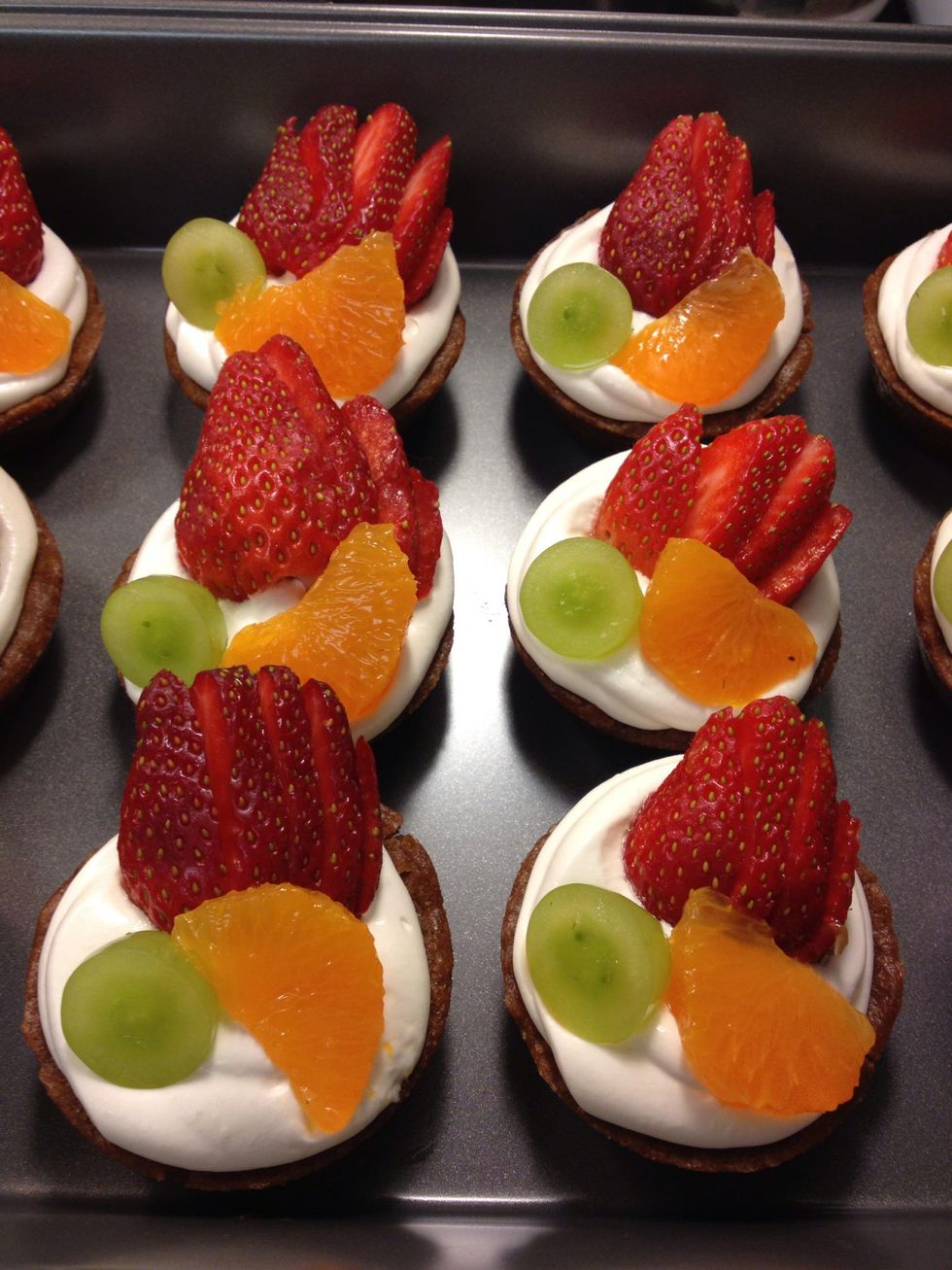 Prepare fresh fruit. This is what I had on hand. 3 clementines, segmented. 12 green grapes, halved. 24 strawberries, fanned.