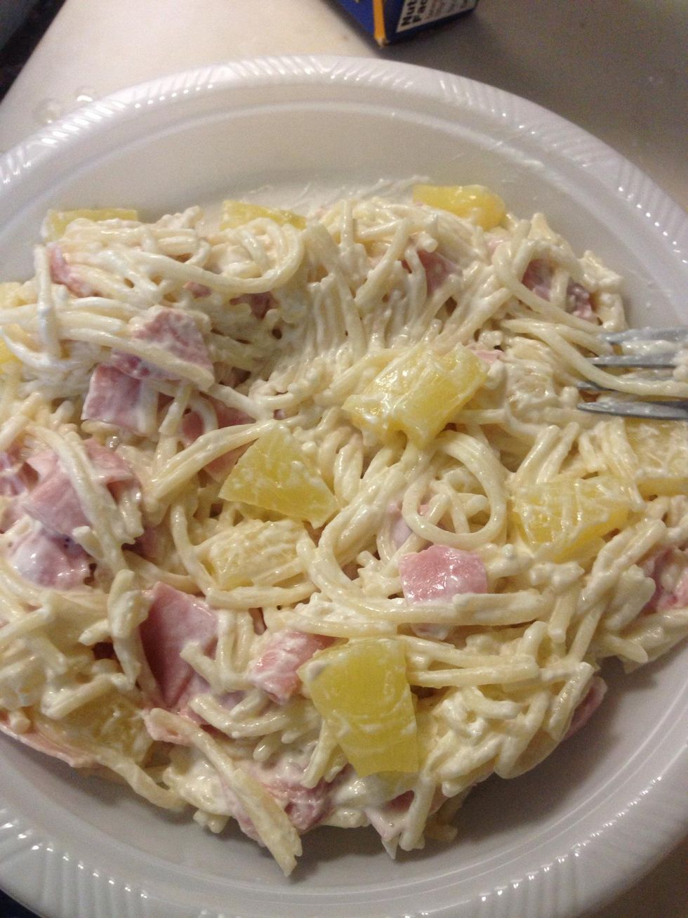 Cut ham into small squares I used half of pound because I like a lot of ham in my pasta. You can add more or less depending on your taste.