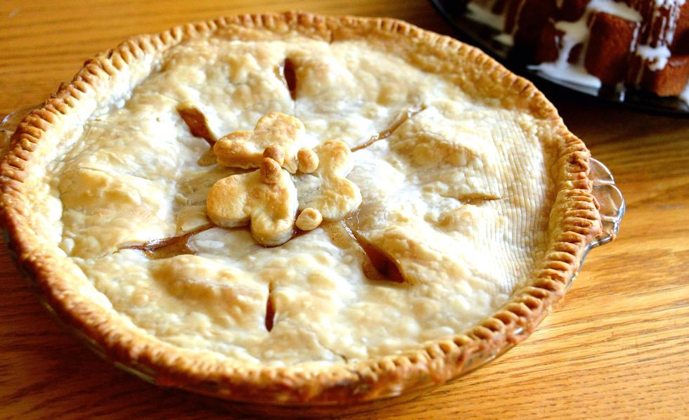 Fit the top of the pie with the next pie crust, and cut small slits to let the air out while baking!