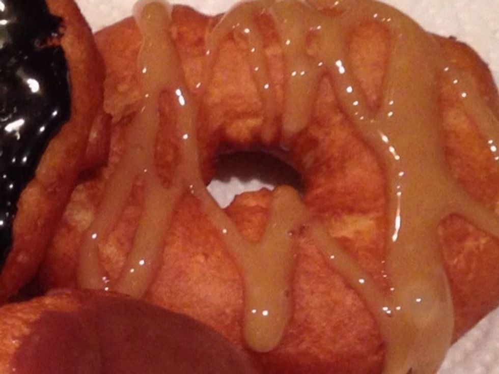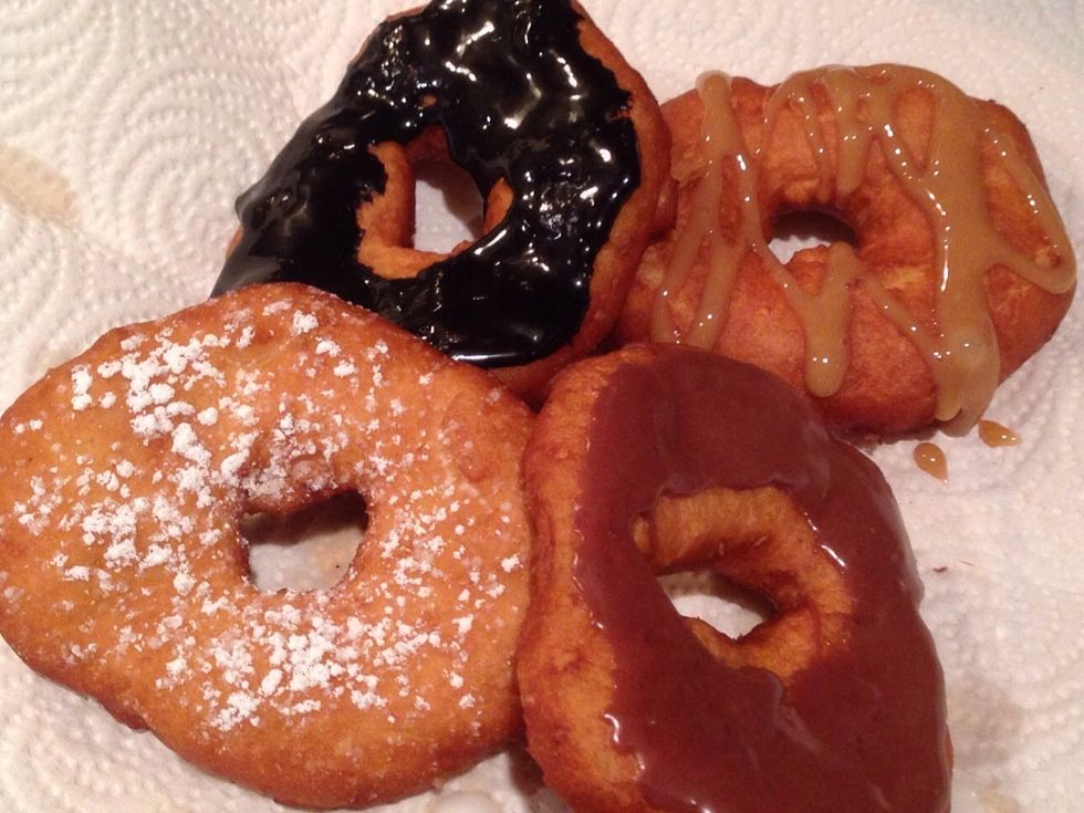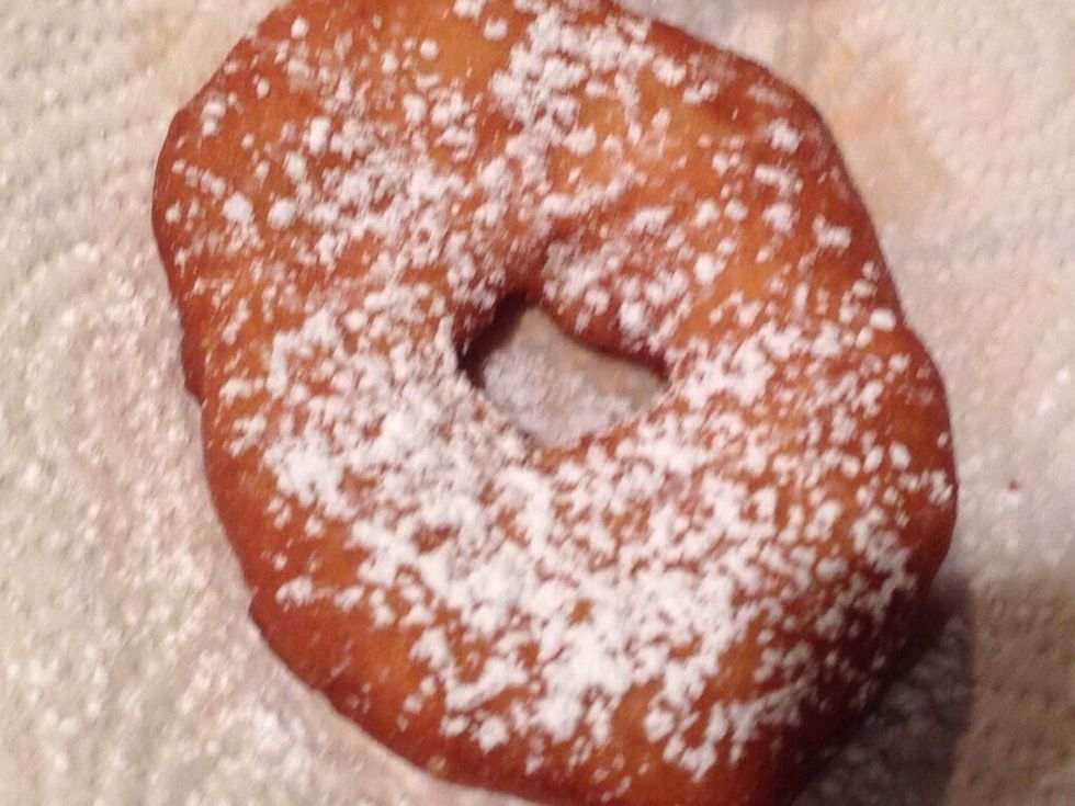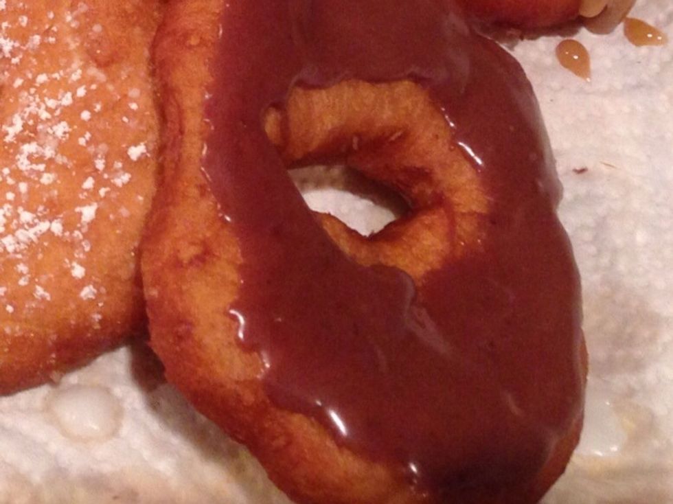 Fry donut on one side 20 to 30 seconds, then flip over with a fork.