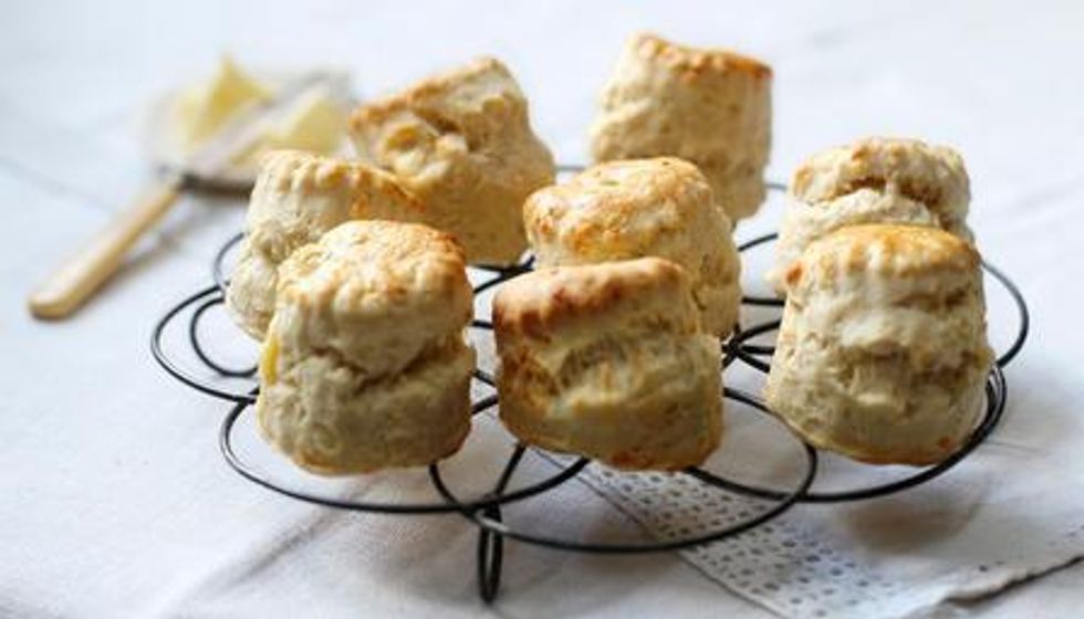 Cut into 10-12 wedges and place on an ungreased baking tray. Bake at 200c/gas6 for 15-18 minutes or until golden brown