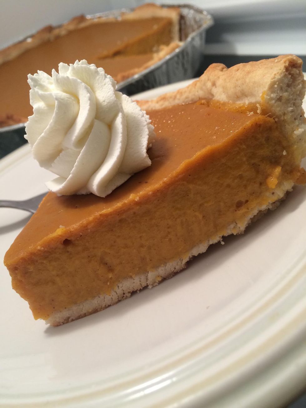 To make the pie crust 1 and 1/2 cup of flour, 1/4 cup of sugar - 1 tbs of nutmeg 2 tbs of shortening 2 tbs of butter 3 tbs of cream cheese, 1 tbs of baking power, and 1/4 cup of milk. That's the crust