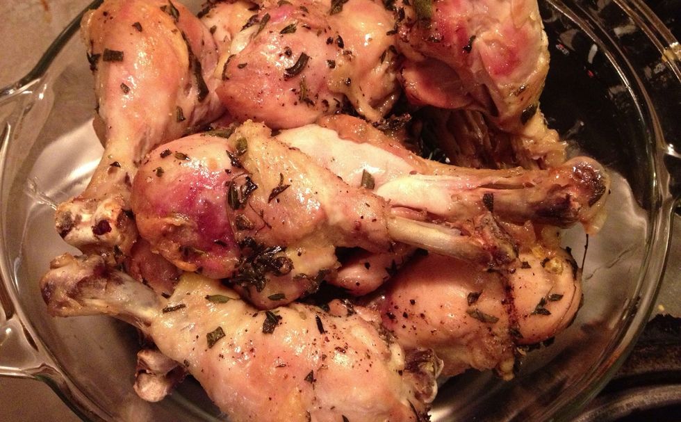 When your chicken timer (you set one, right?) goes off, turn pieces over. Kick the heat up to 450, and repeat bake time. (For example, another 25 mins for legs).