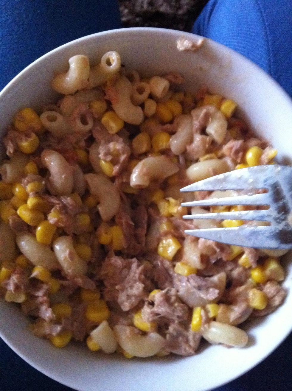 Boil pastaPrepare tunaPrepare sweetcornDrain the pasta once boiled and add tuna, sweet corn and lots of salad cream to the pastaMix the pasta and add salt&pepper, then serve into bowls:) xo