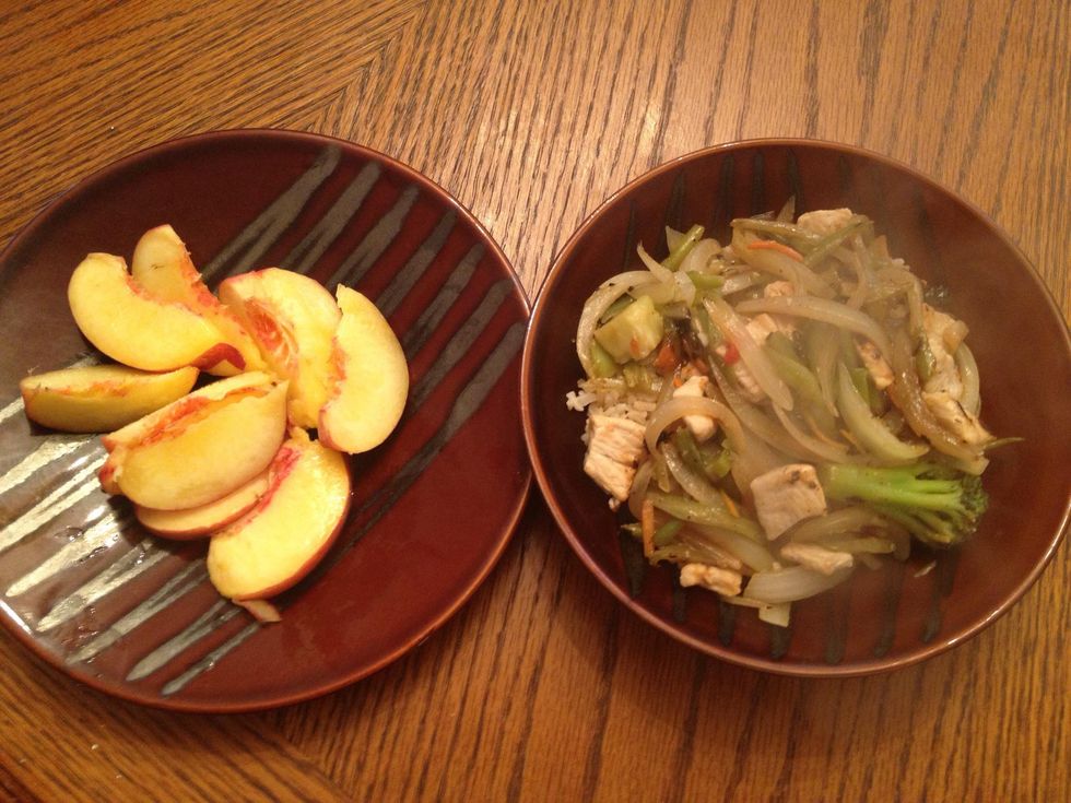 I served mine with some peaches! Yummy! Enjoy! (411 calories per serving when served with brown rice; makes about 4 servings)