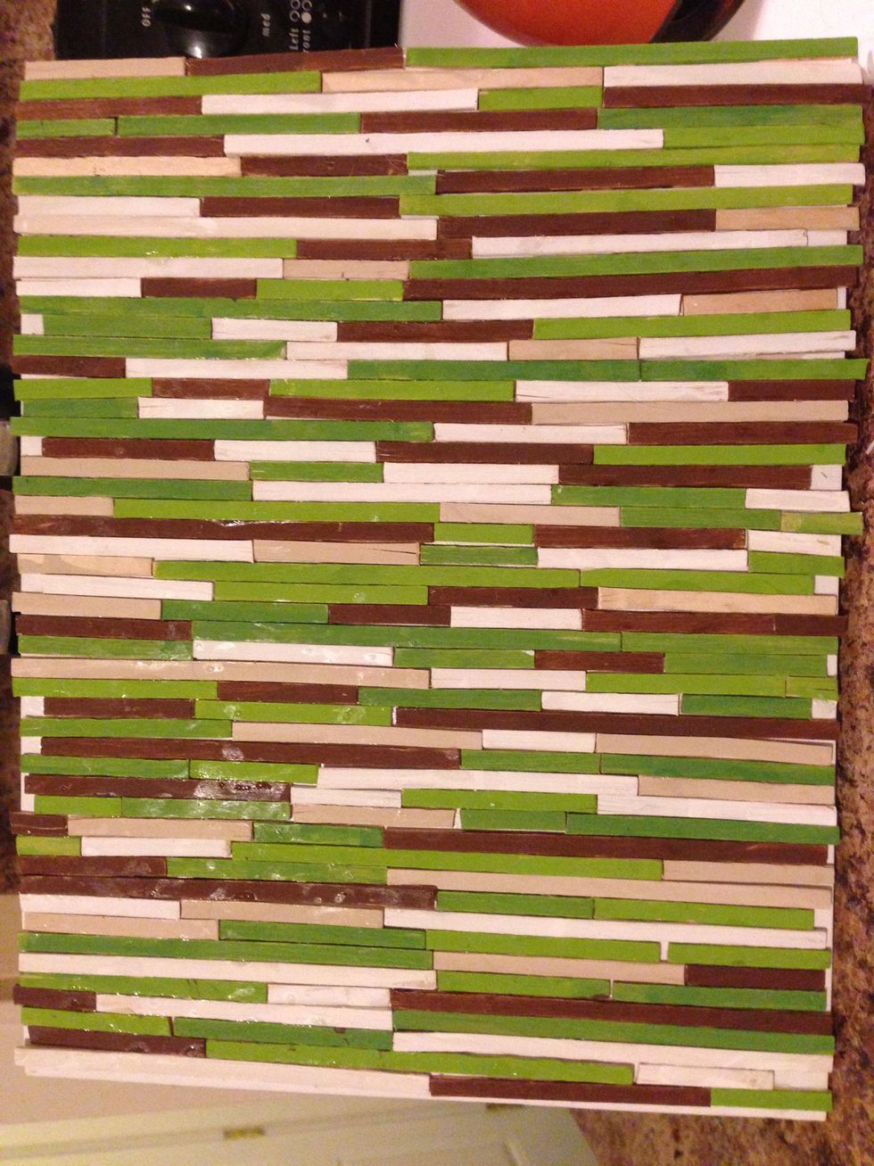 Start with craft sticks, about 2$, or you could use coffee stirrers. I used all the same width but you could mix it up.