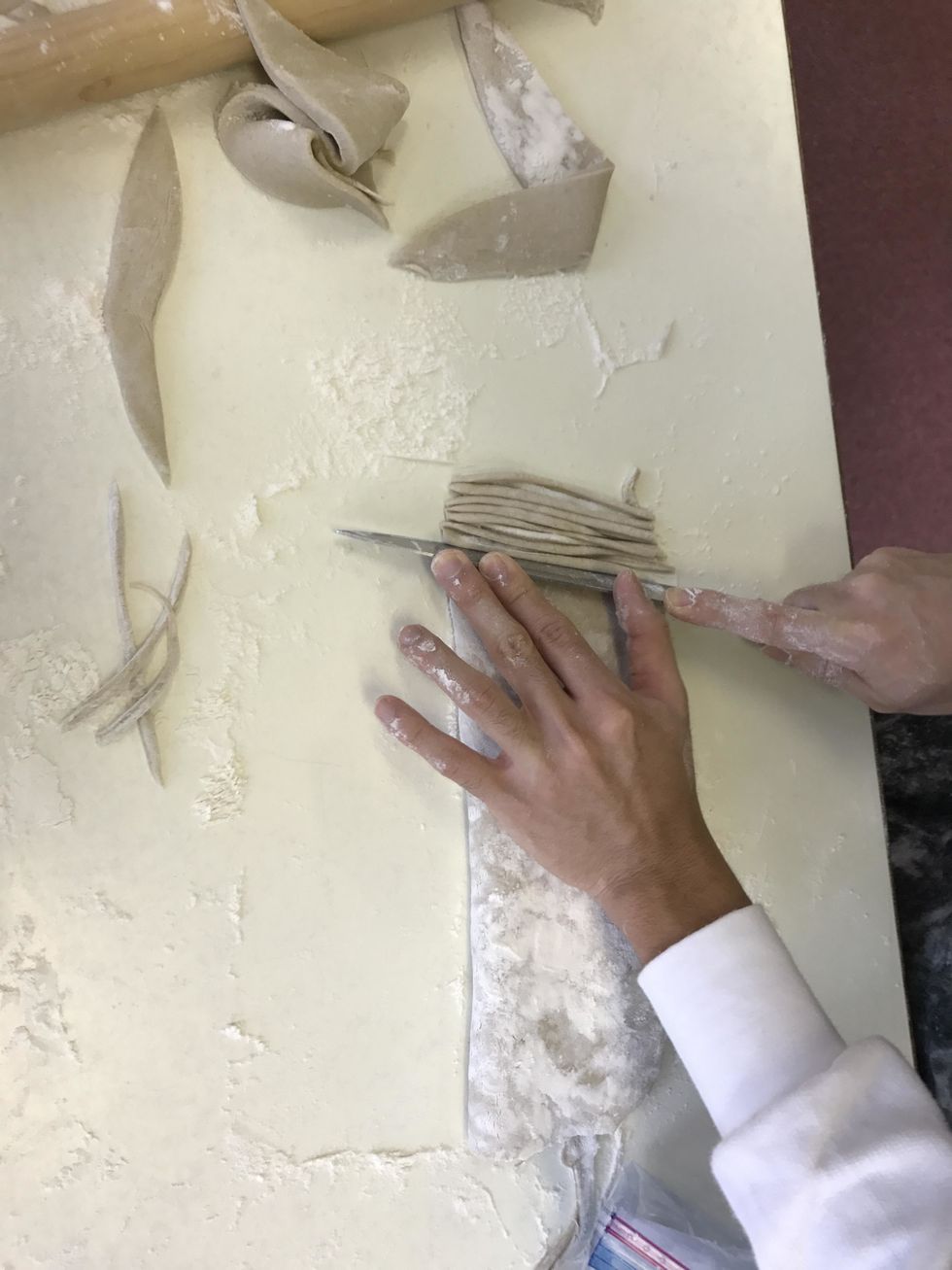 Make sure that the water is boiling. After checking, place the cut noodles into the pot.