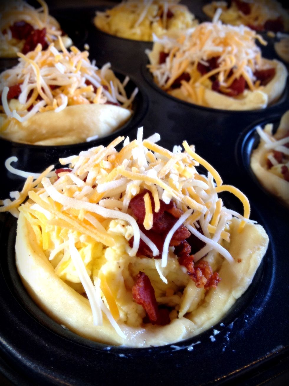 Separate the crescent rolls and press one into each muffin cup.