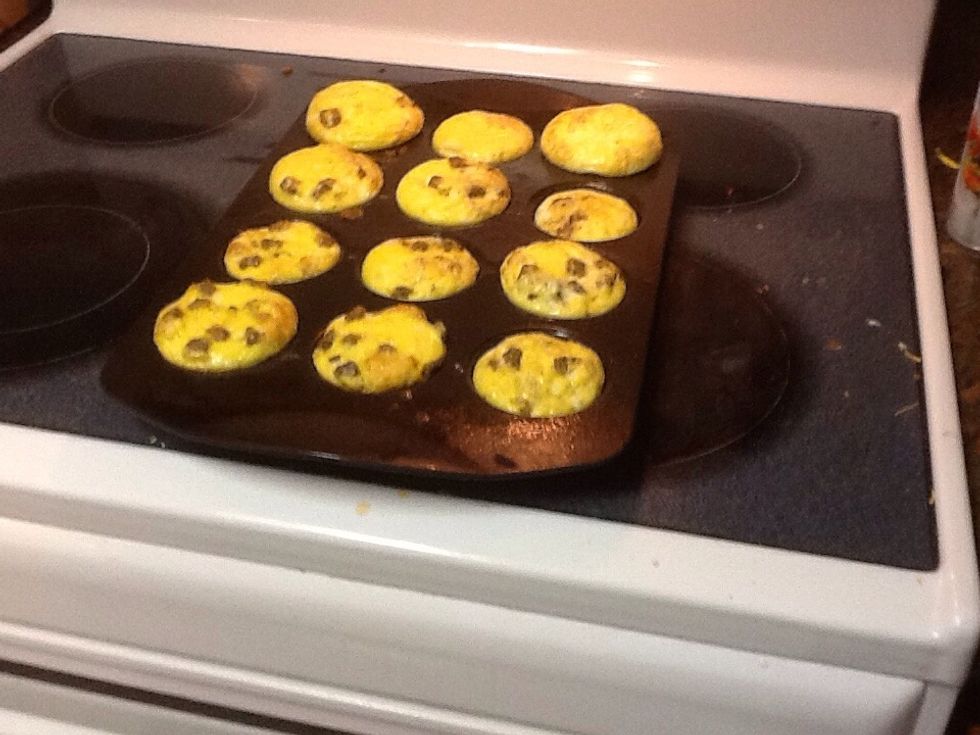Pour 1/4 cup egg mix into muffin pan