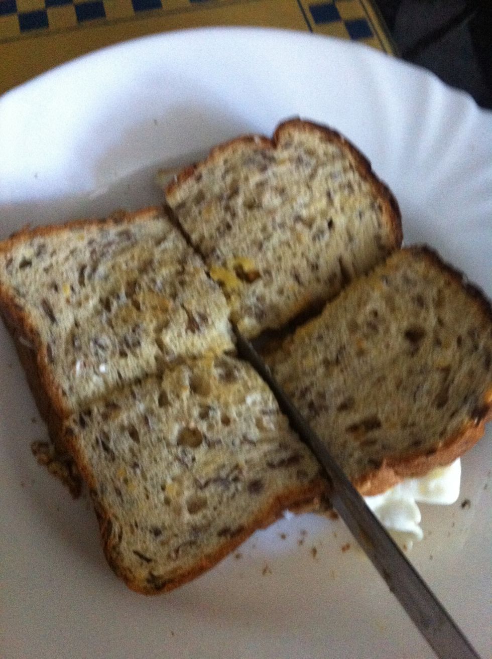 Add the other slice of toasted bread on top and serve as you like. (I like to slice mine up into 4 squares!)