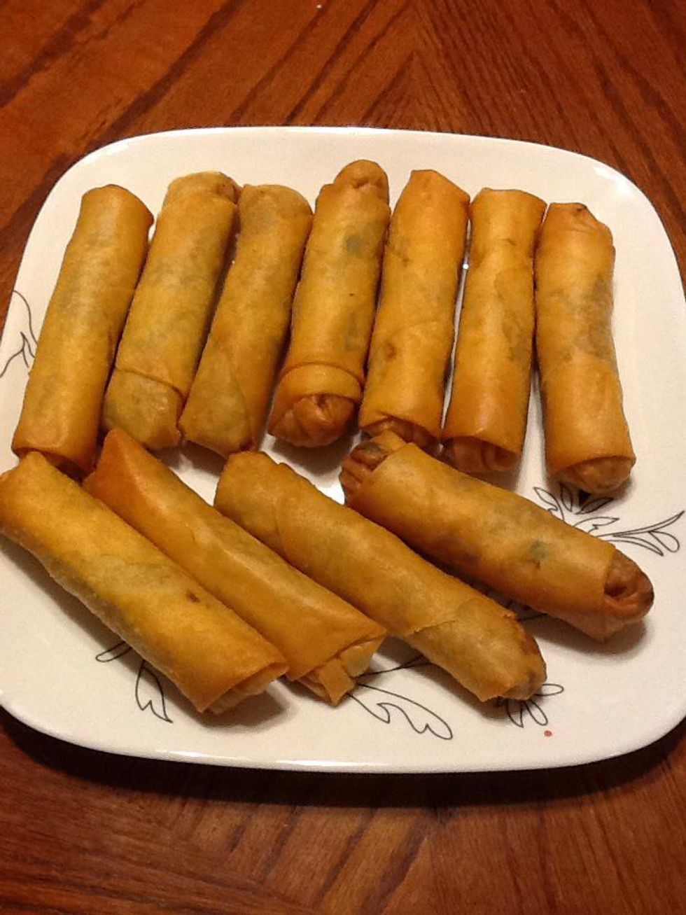 Keep turning the egg roll until golden brown.