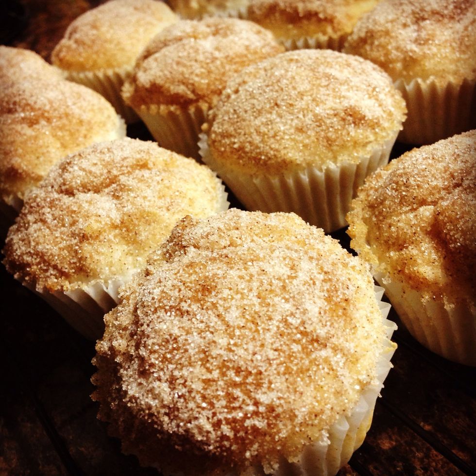 Take the warm muffin and thoroughly roll into the sugar and cinnamon mixture. If you're not coating the entire muffin, then coat extra sugar on top. There will be leftover butter and sugar.