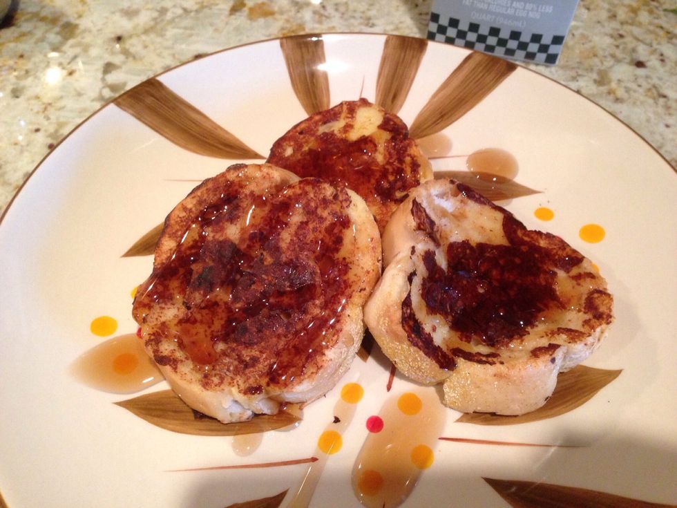 Pour eggnog in a bowl and soak your bread in it. No need to add eggs.