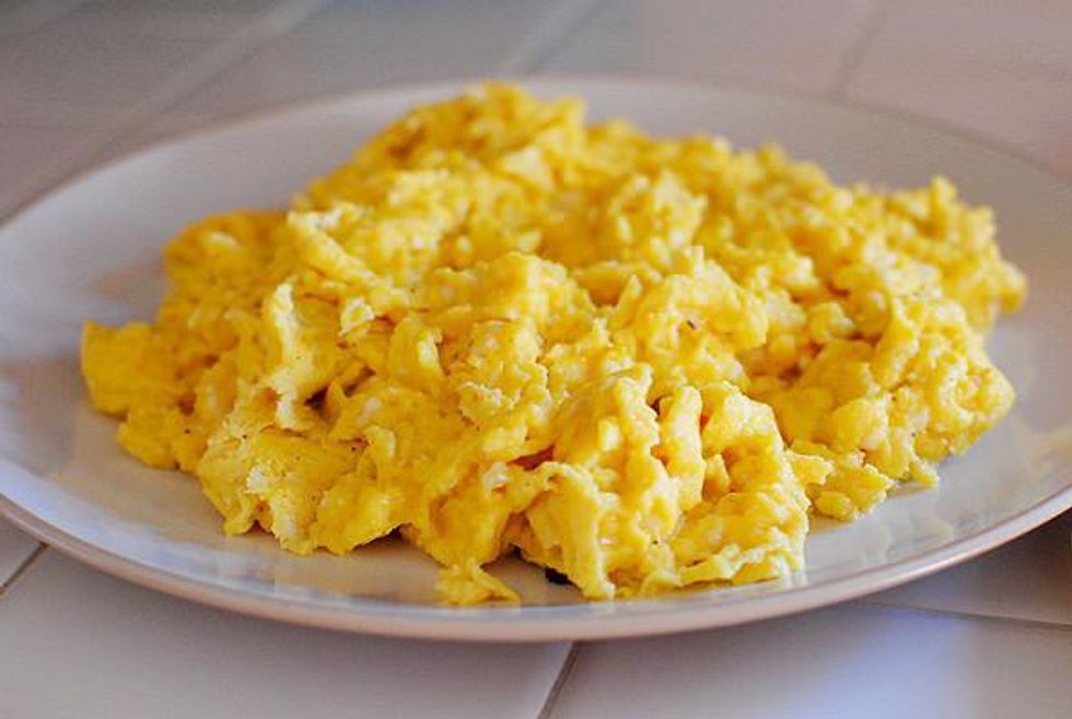Wash hands. Get the bowl eggs and milk.Tap the egg on bowl. Be careful for shells! Crack eggs in bowl add milk.Heat the pan up! Turn the burner on to medium heat.Place egg mixture in pan. Stir until done!Enjoy your meal!