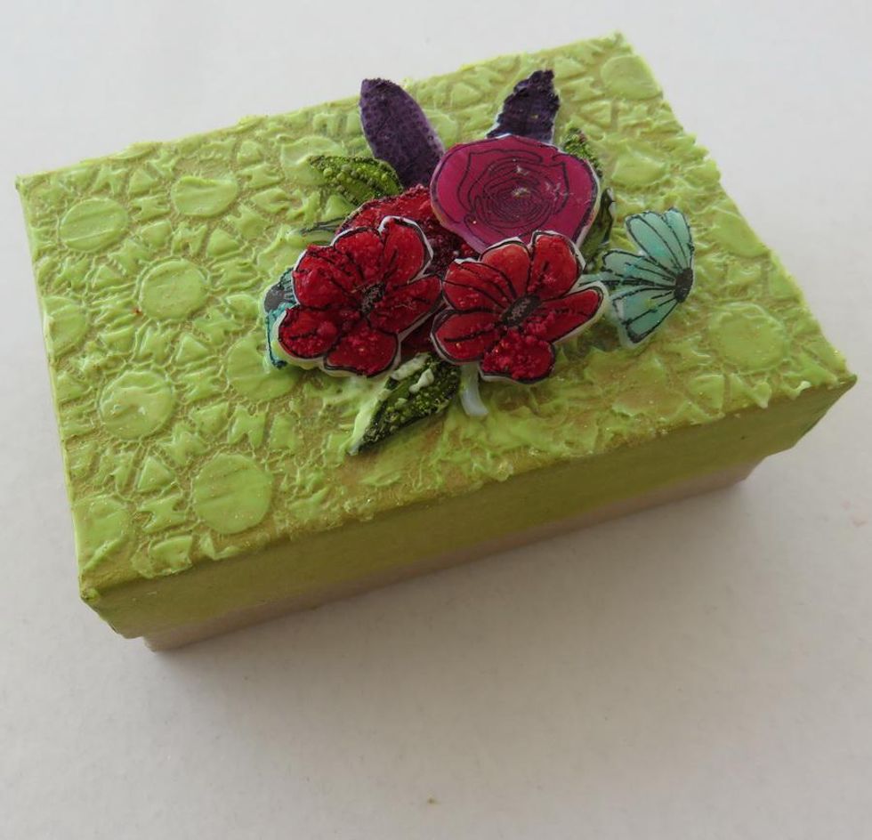 Arrange the flowers and the leaves over the box in your favorite style. Glue with Glossy Accents or other clare glue. Enjoy your gift box or give it aways with a gift inside!