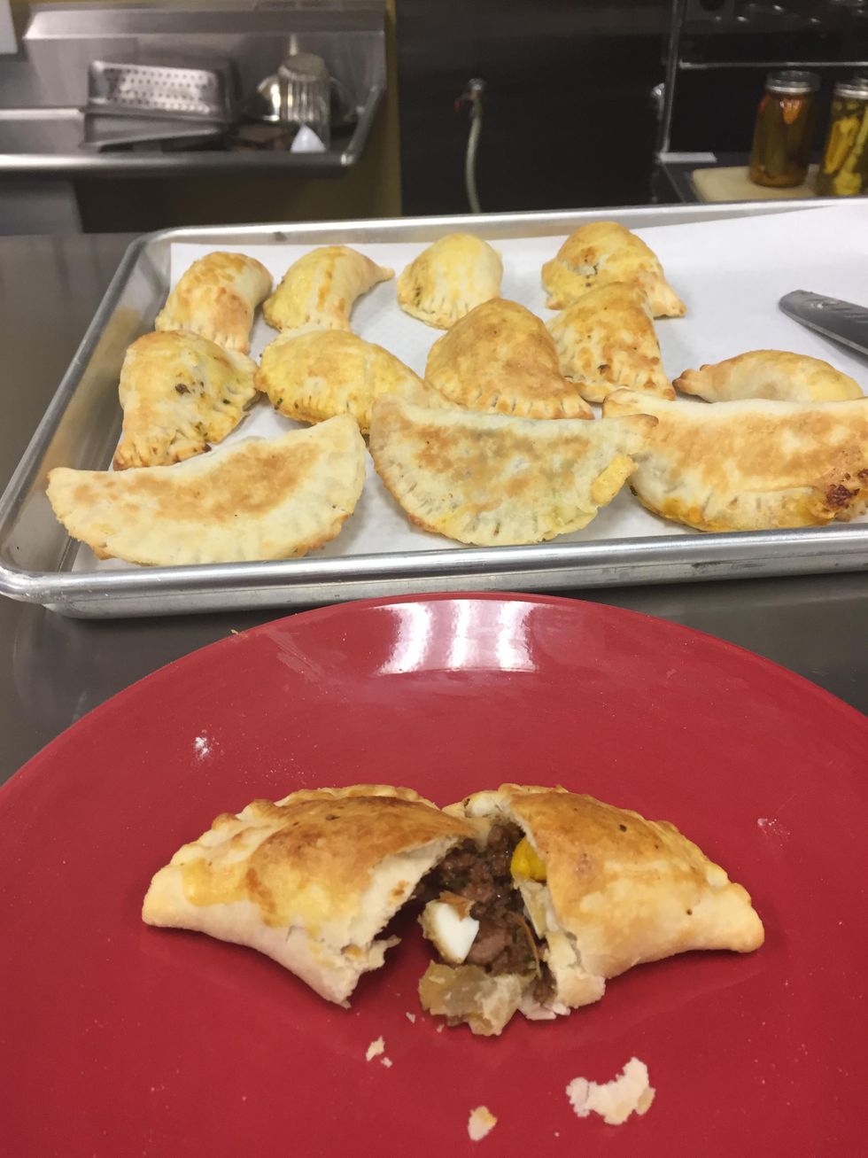 Add the feeling, before closing add some water on the corners to help seal the empanadas