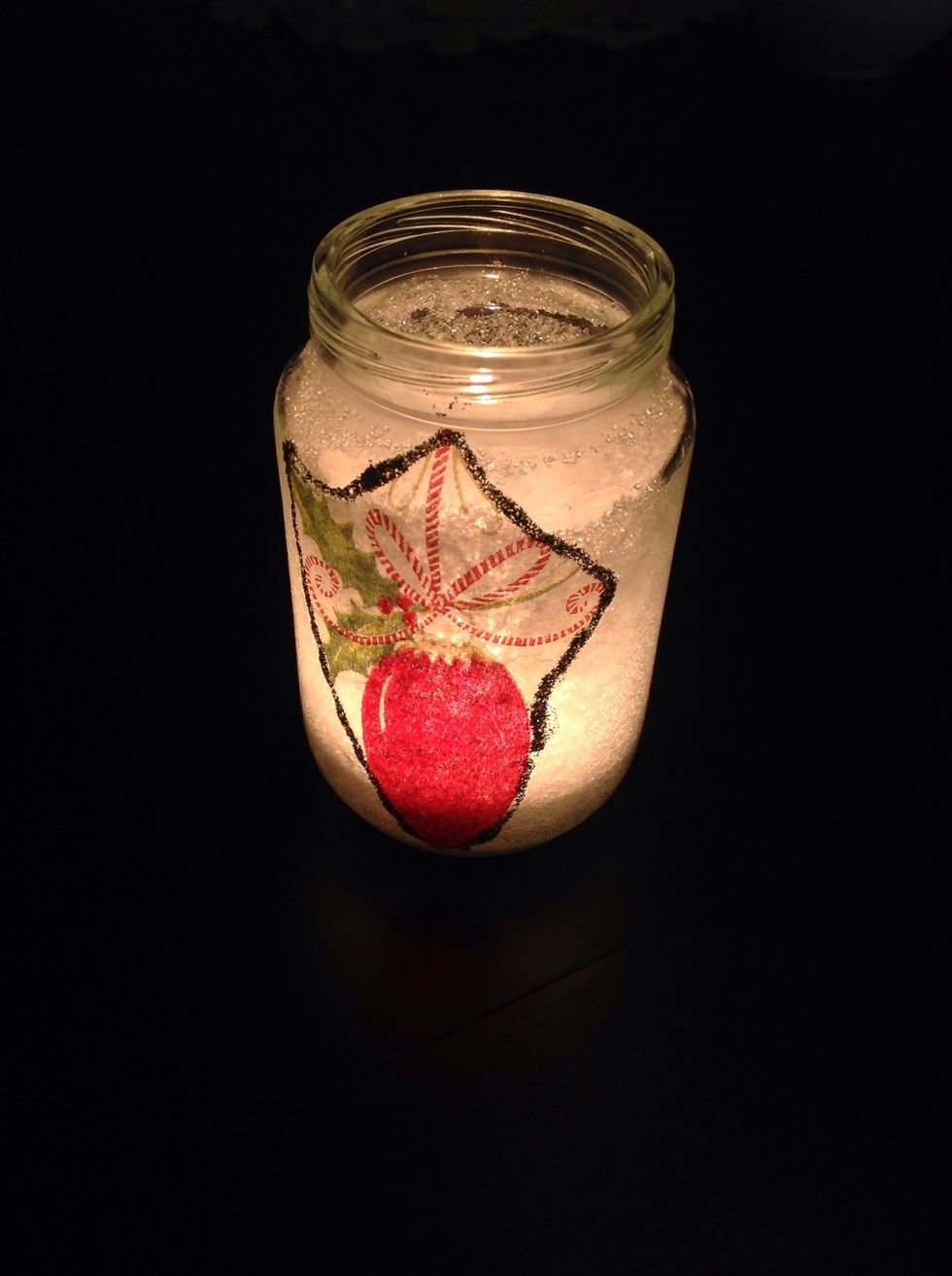 Välj ut en del av servetten du vill använda, tänk på att den ska få plats på burken.