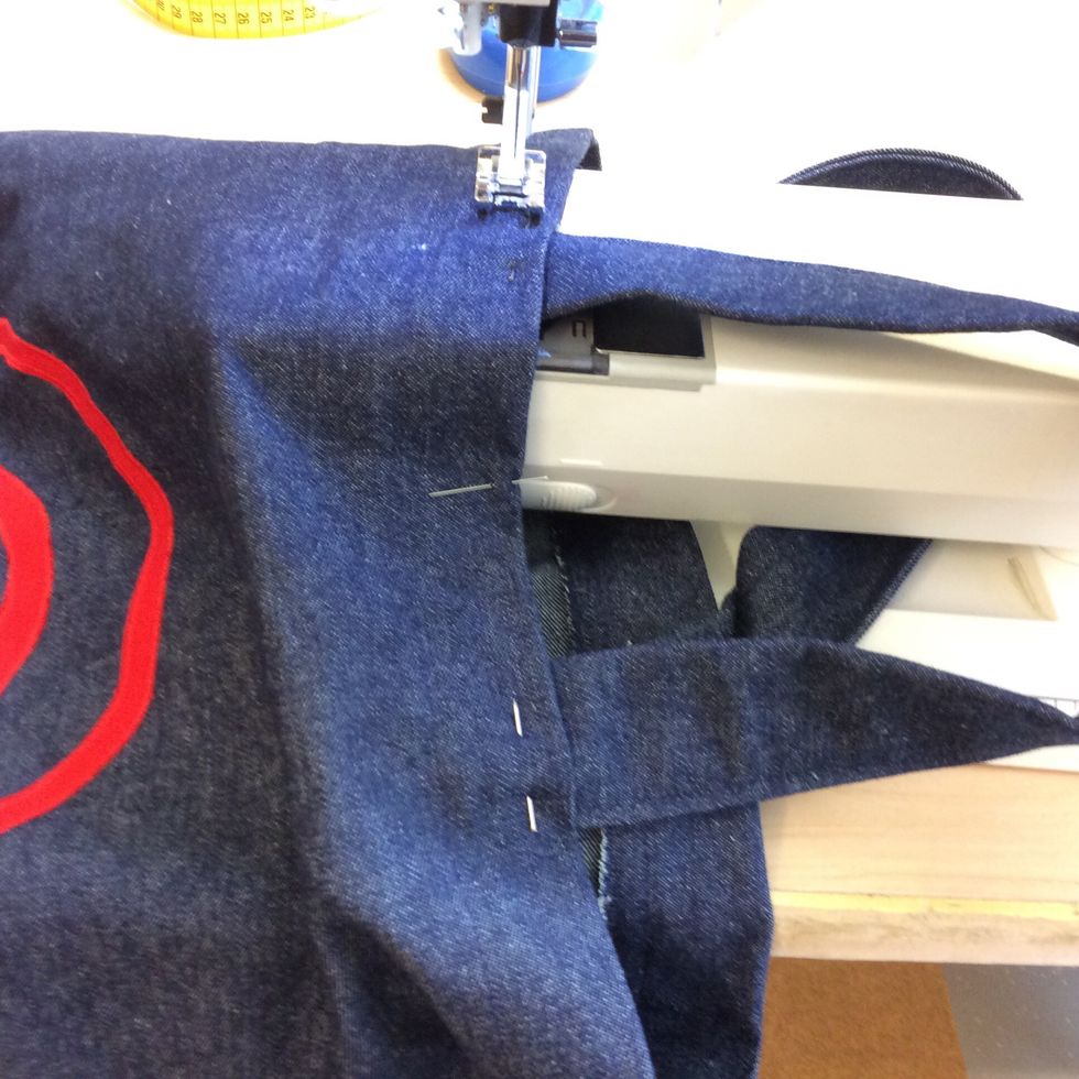 En bild till på samma moment, att sy raksöm 3 cm från kanten.