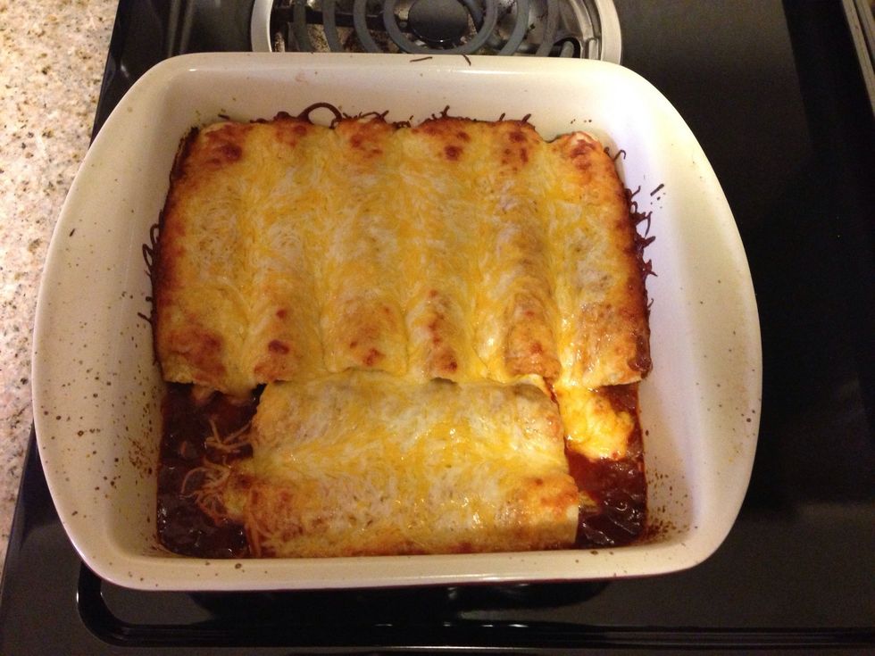 Add 10oz can of enchilada sauce and cover with Mexican cheese