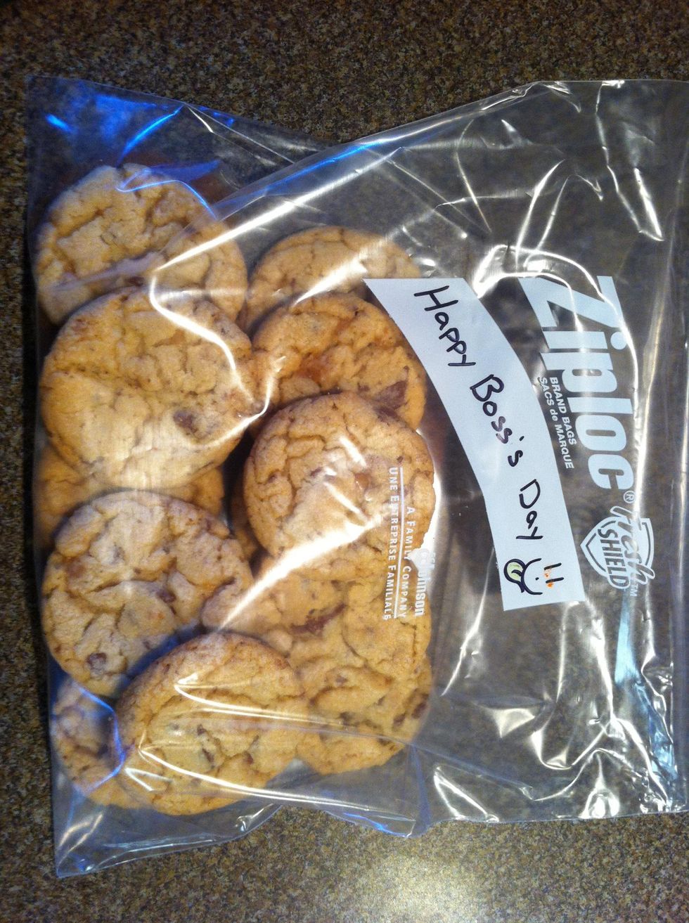 Tomorrow is bosses day so I'm going to make my bosses favorite cookie. This is a great recipe base for any kind of 'blonde' cookie you can think of! (Chocolate chip, Reeses, or any other yummy candy)