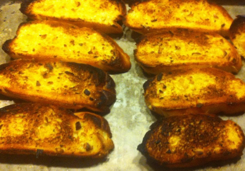 Spread the garlic butter liberally onto each slice of bread. Place the slices on a baking sheet.