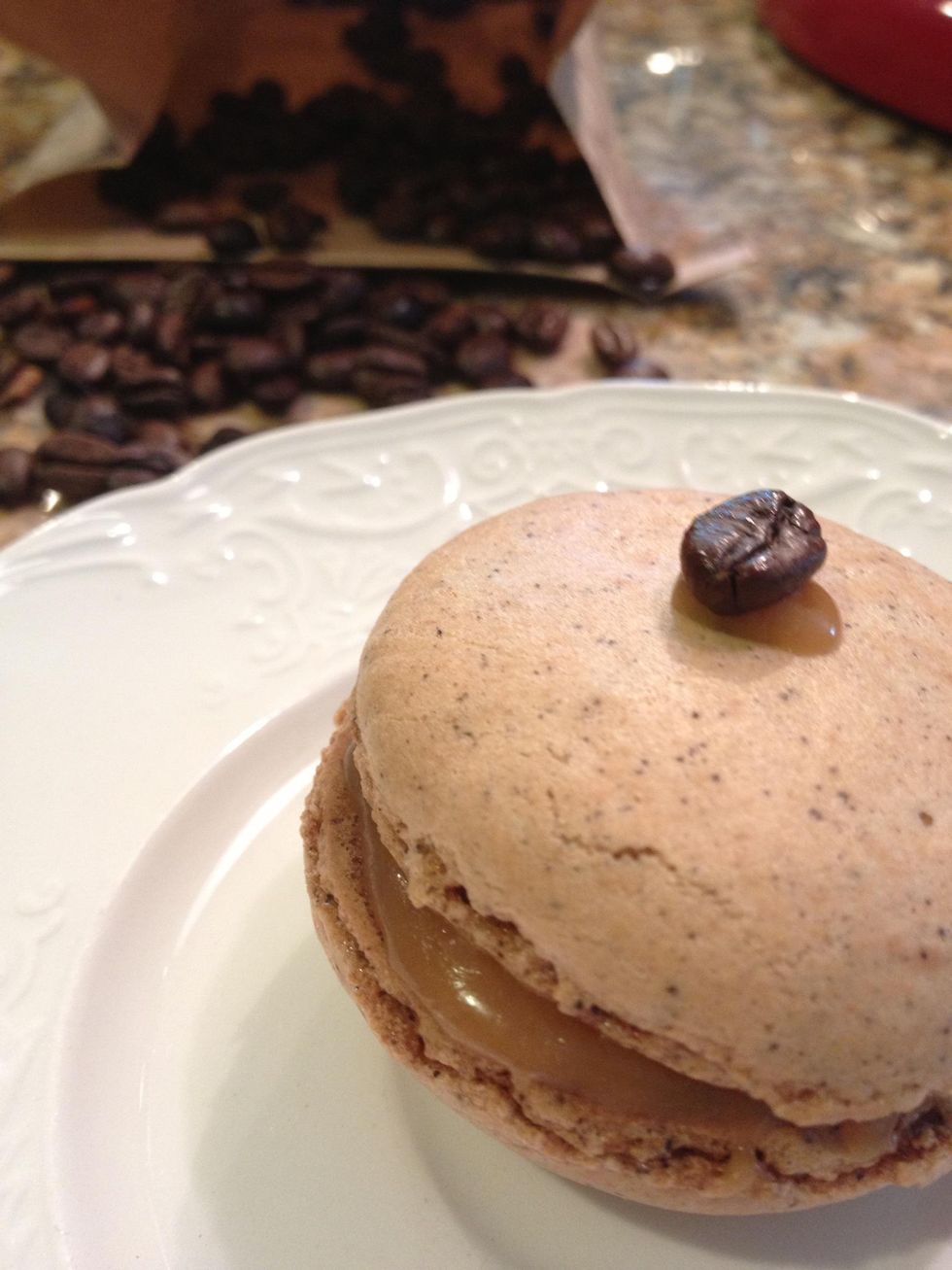 Perfect! Spread some of the chilled caramel on half of the macarons once they've cooled, and sandwich them together.