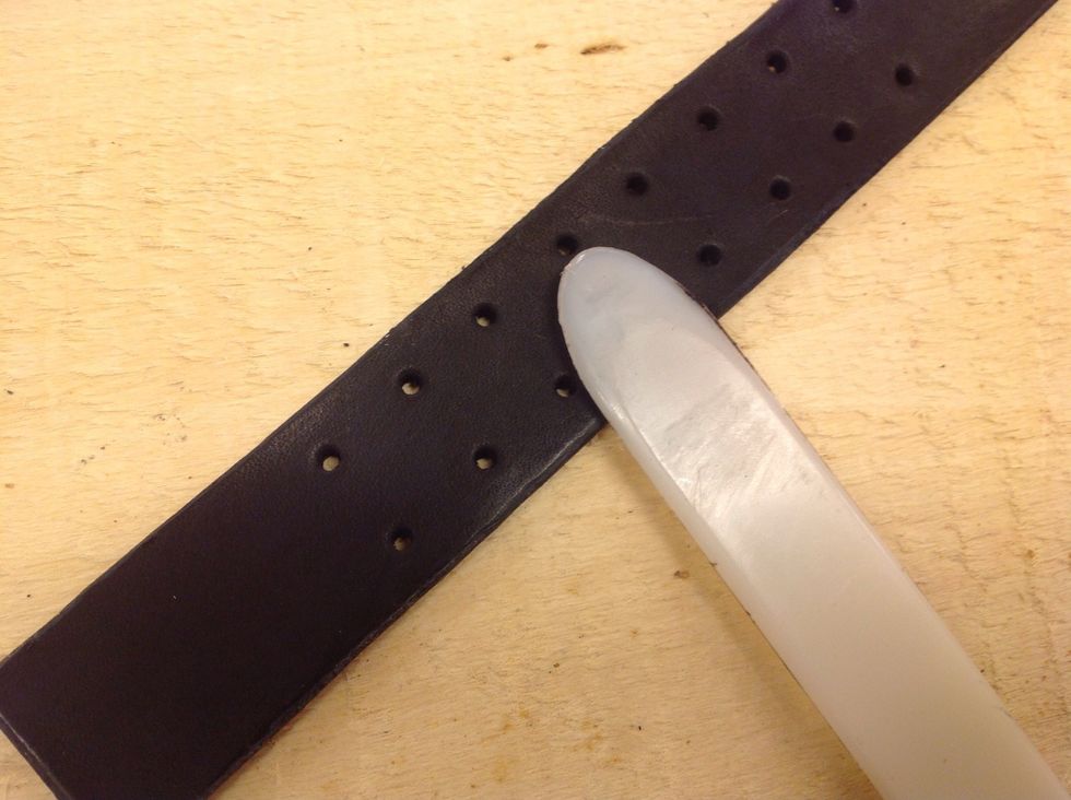 ....ta läderfett på fingret och bearbeta in det i lädret på både fram - och baksidan på armbandet.