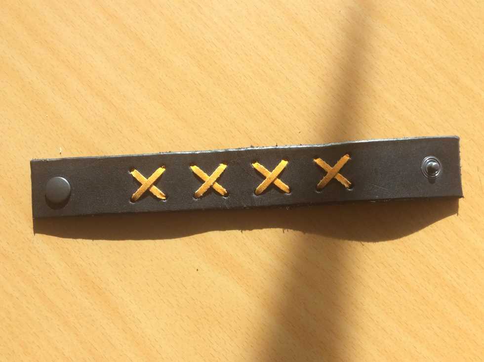 Du får hjälp att skära ut ditt armband i läder. Rullkniven är väldigt vass och används bara av vuxna.