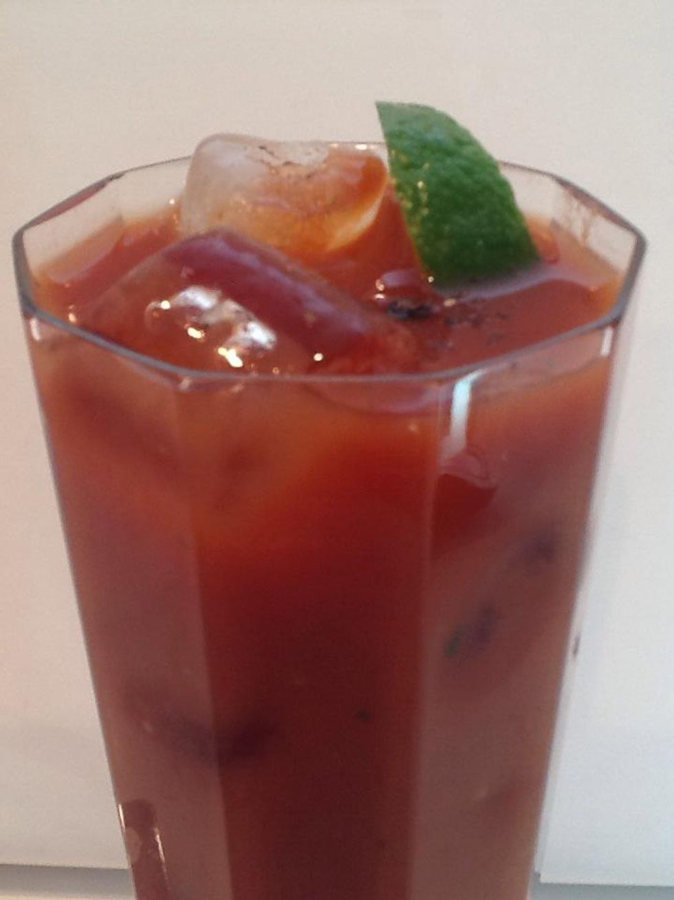 To finish, stir in the W. sauce and more black pepper. Taste and decide how much Tabasco to add. Up to you. Celery is a bad idea- it drips Bloody Mary on your clothes/ carpet. Limes stay in the glass.