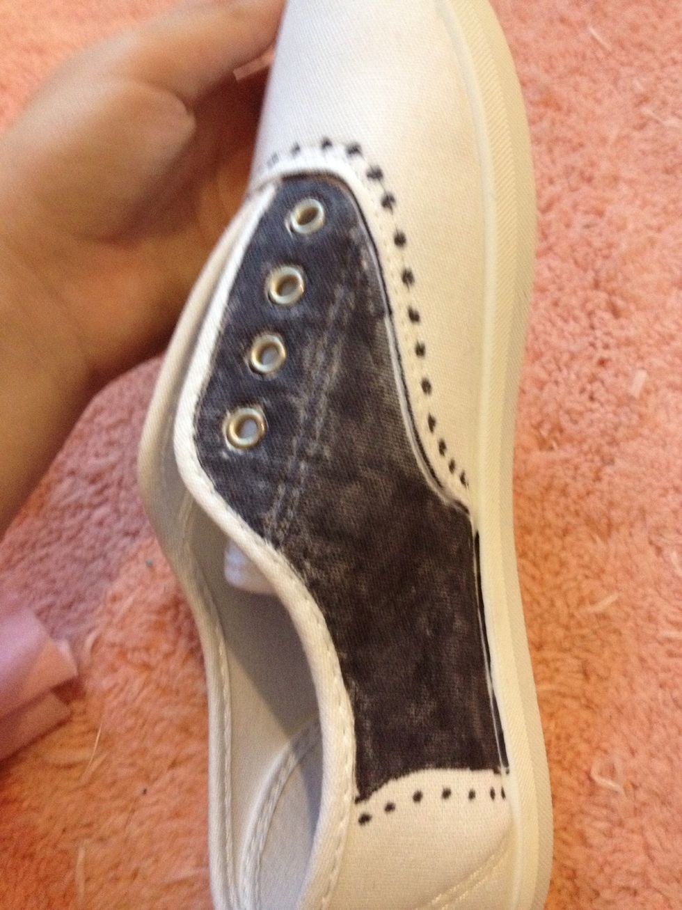 Then, using the permanent markers, draw these lines on the heel, sides, and front.