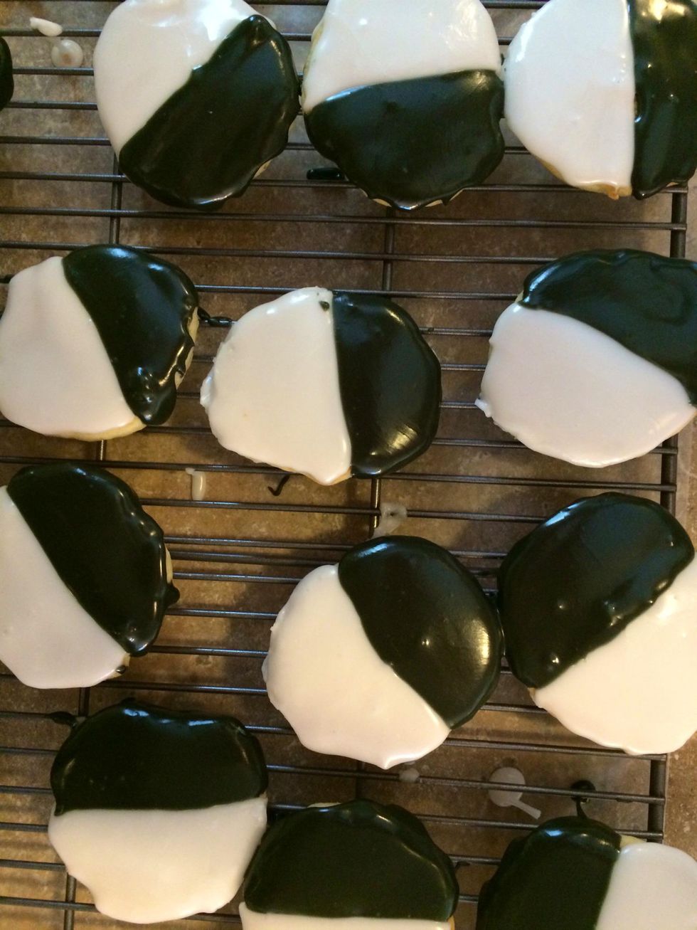 Frost 1/2 of cookie with white frosting - return remaining frosting to mixer