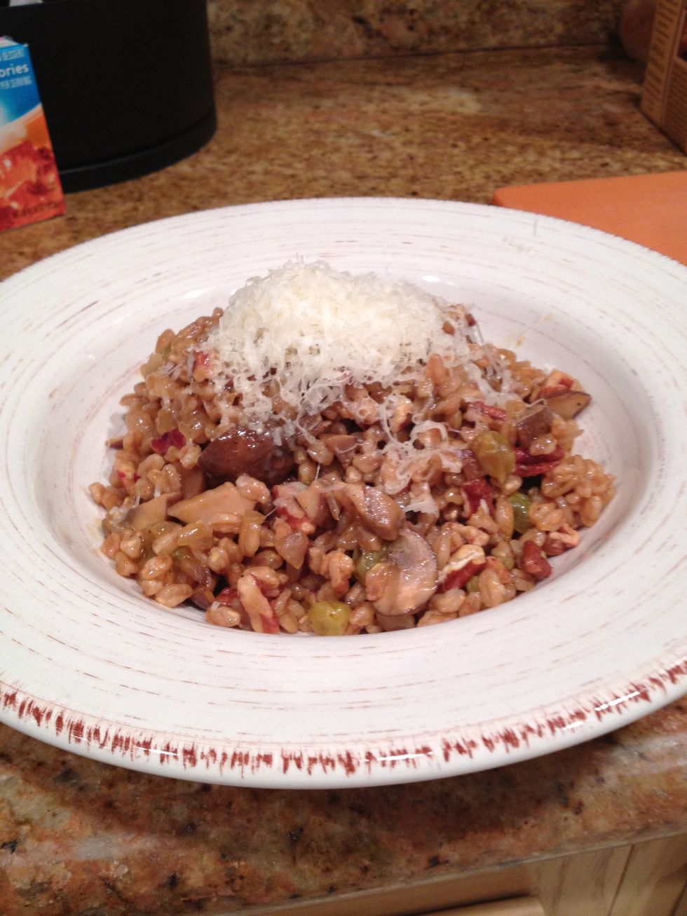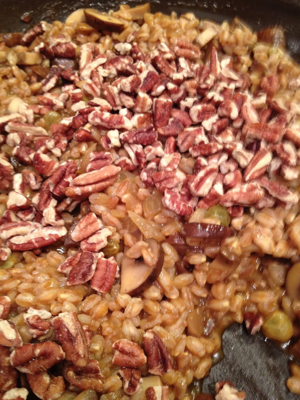 Cook adding vegetable stock and stirring constantly similar to a risotto