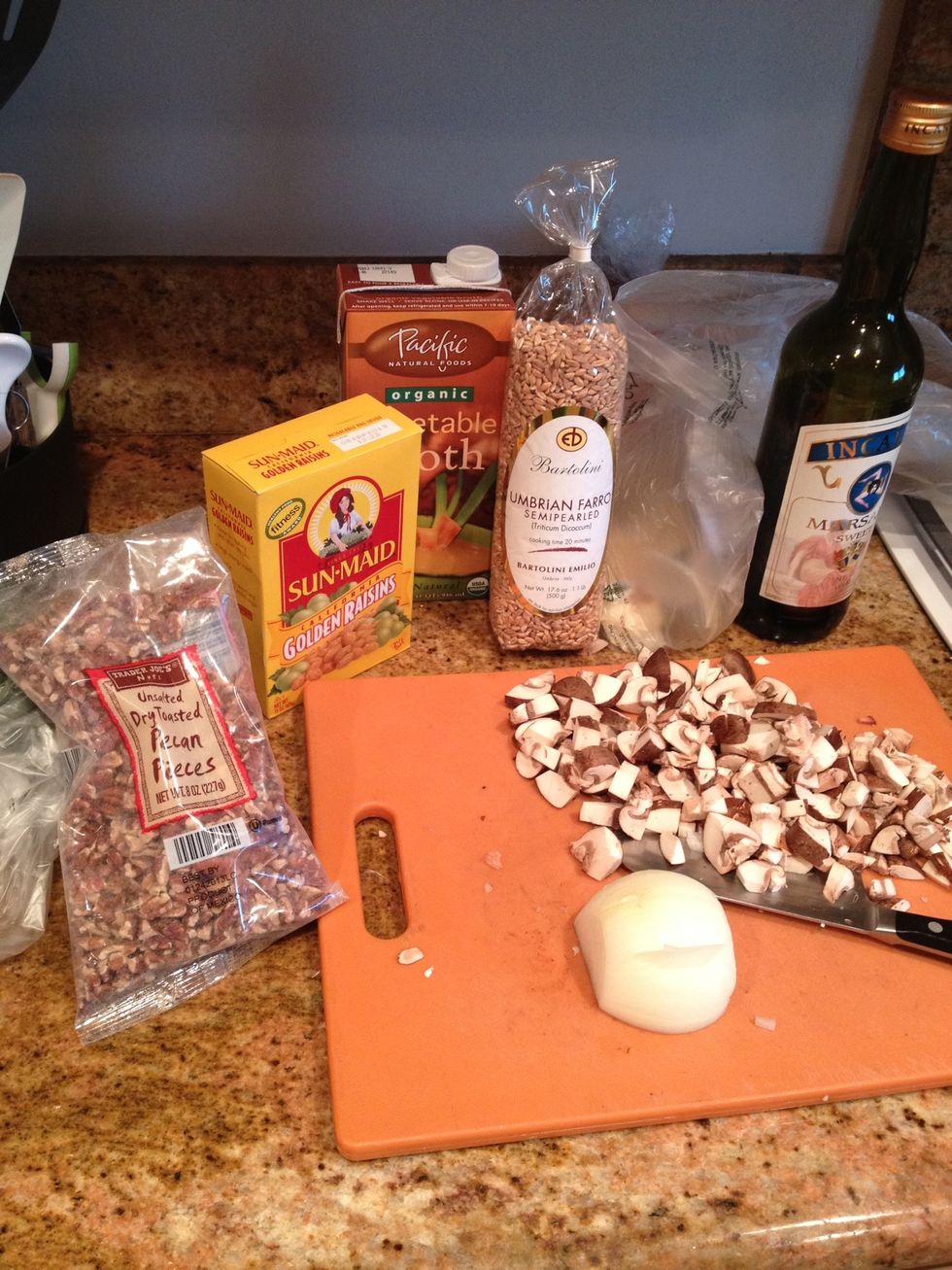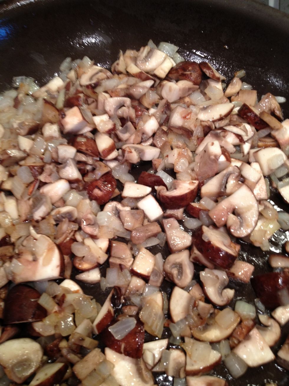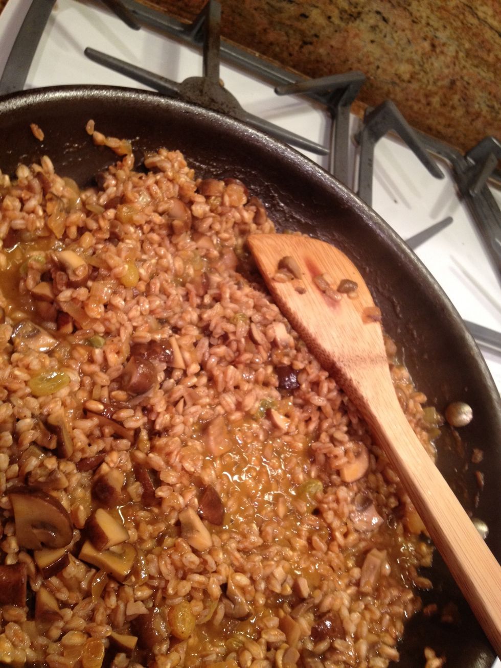 When the mushrooms and onions have sautéed mushrooms are brown add the raisins and the marsala