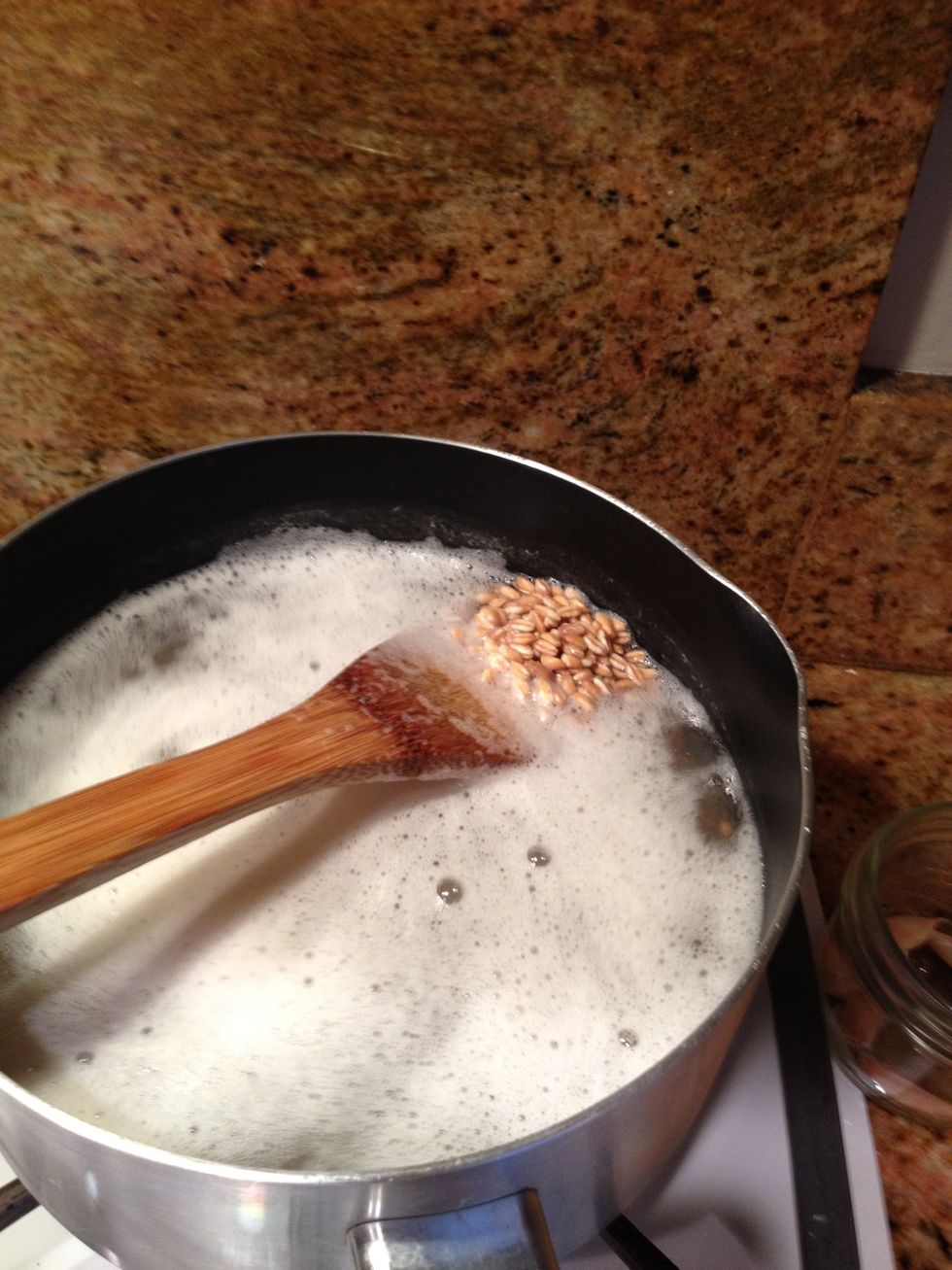 Add farro to the boiling water and cook for 10 to 15 minutes