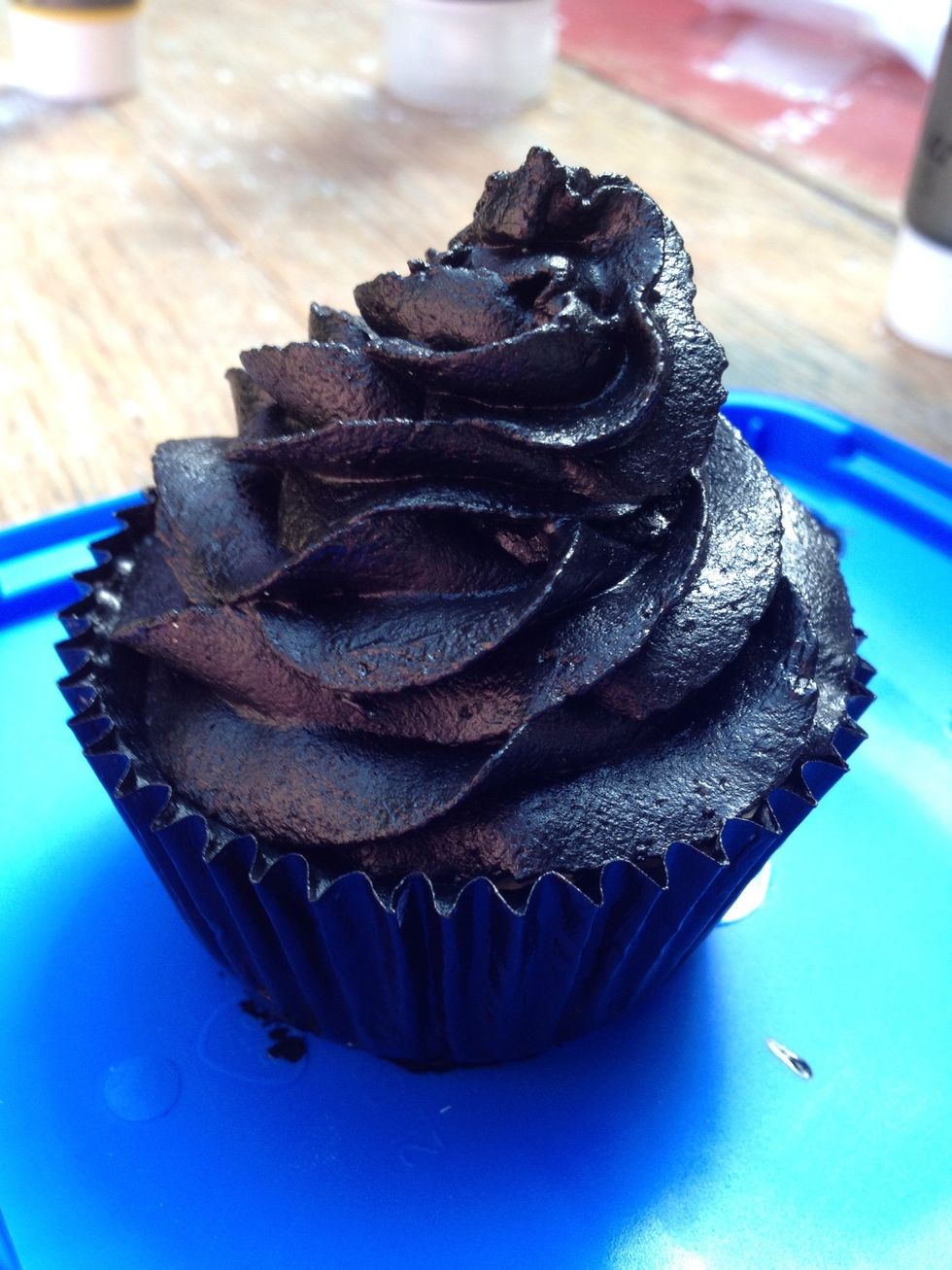 Add the water a little at a time until you get the consistency you're after. For the bases of the cupcakes it should be pourable, for the "frosting" it should be ... Well, like frosting.