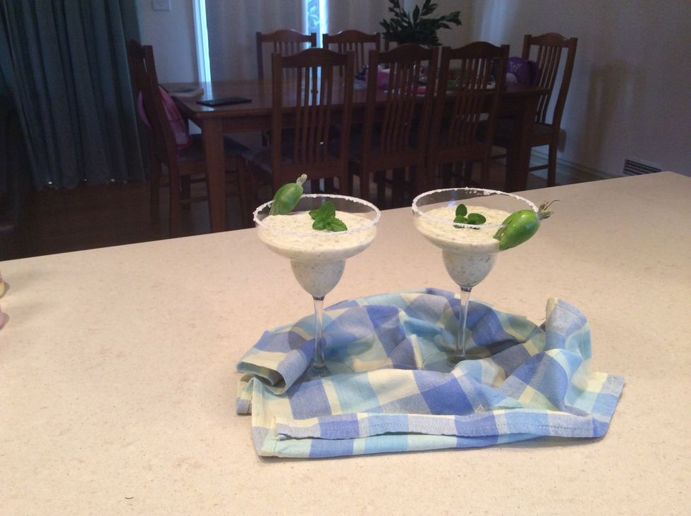 Ingredients:4 Ripe Feijoas, 150 ml cream, 50 g sugar, 1/4 pineapple juice, 2 tsp gelatine, 3 tsp lime juice, mint for decoration, electric beater, blender, 3 bowls. Remember to wash your hands!