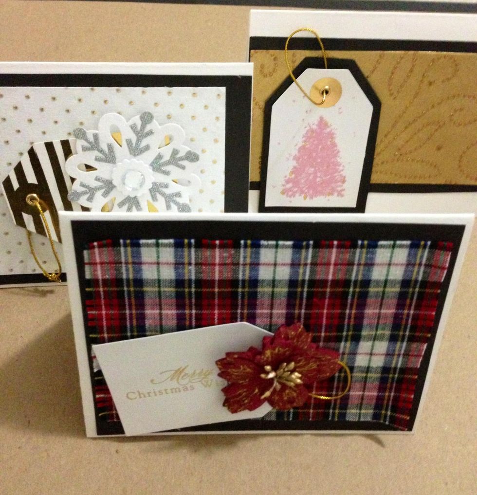 Heres another card idea, not using a gift tag. I had some special transparent stickers that I decided to use. Same steps of layering black paper with decorative paper on top. Now time to assemble!