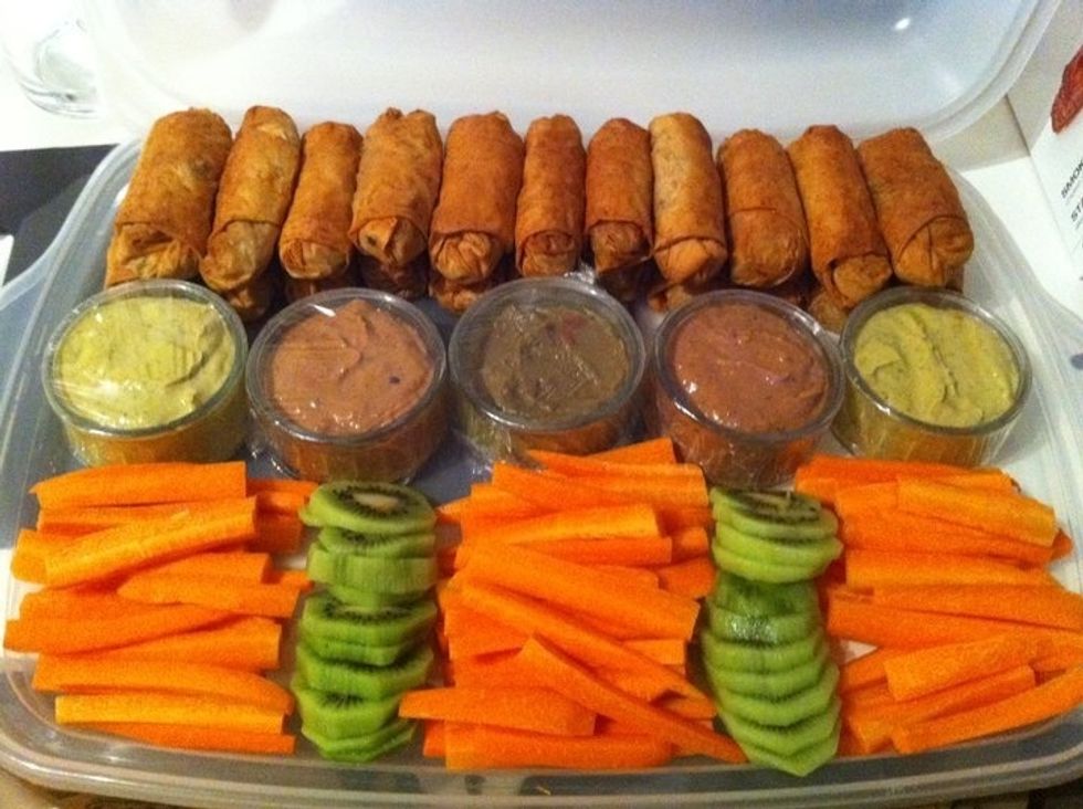 Refrigerate your mango dip and serve it to your guests cold. Arrange your rolls and dips creatively with other items that also taste great with this spicy dip such as mango, kiwi, and carrots. Enjoy!