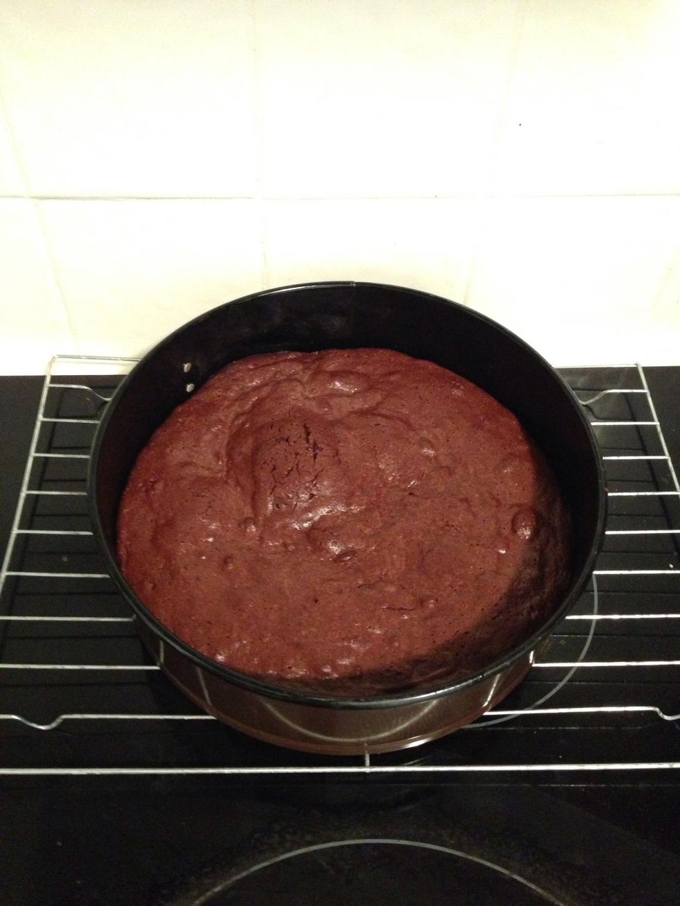 Add the cocoa powder and whisk until just mixed. Do not over mix. Now, pour into pan.