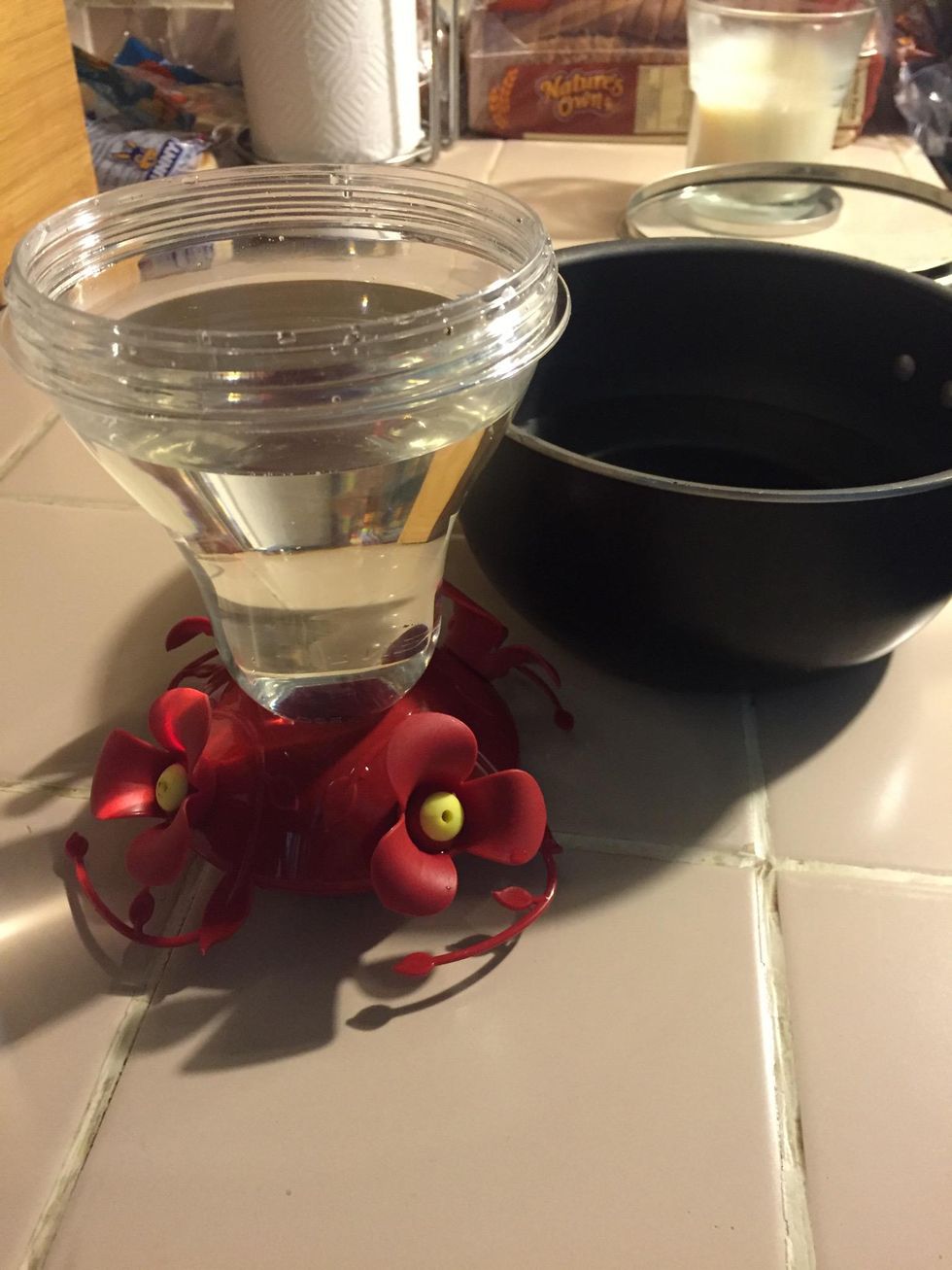 Once cooled, pour into hummingbird feeder and enjoy your visitors! Store extra nectar in an airtight container and refrigerate. Change at least once a week.