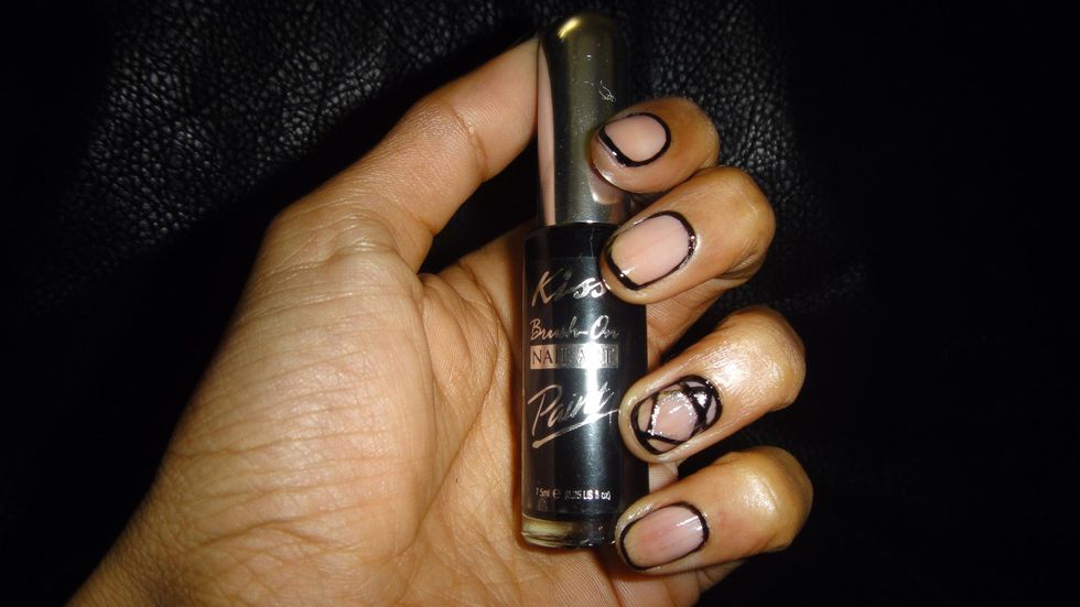 Taking your black nail art polish draw a line around your nail like so. I am using Kiss Brush On Nail Art Paint in Black.